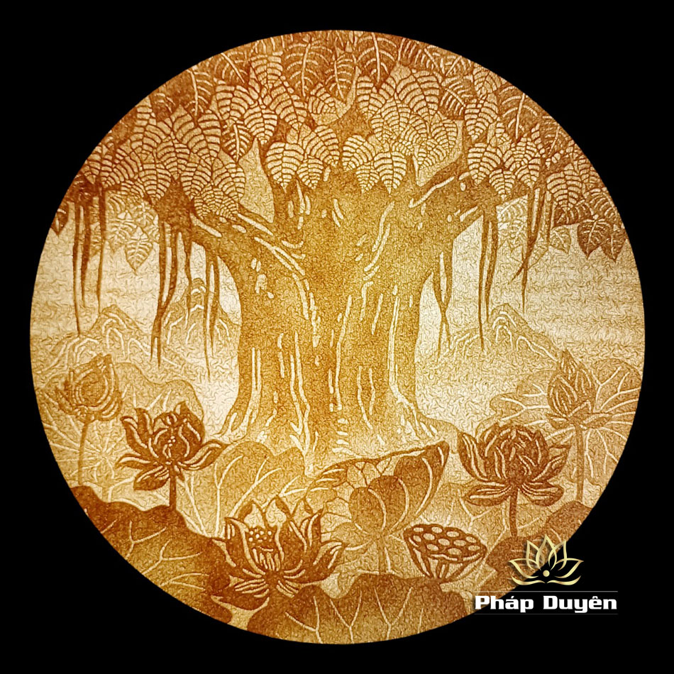 Tranh Điện Trúc Chỉ Hoa Sen Hình Tròn, Đường Kính 41cm, 50cm, 61cm, 68cm