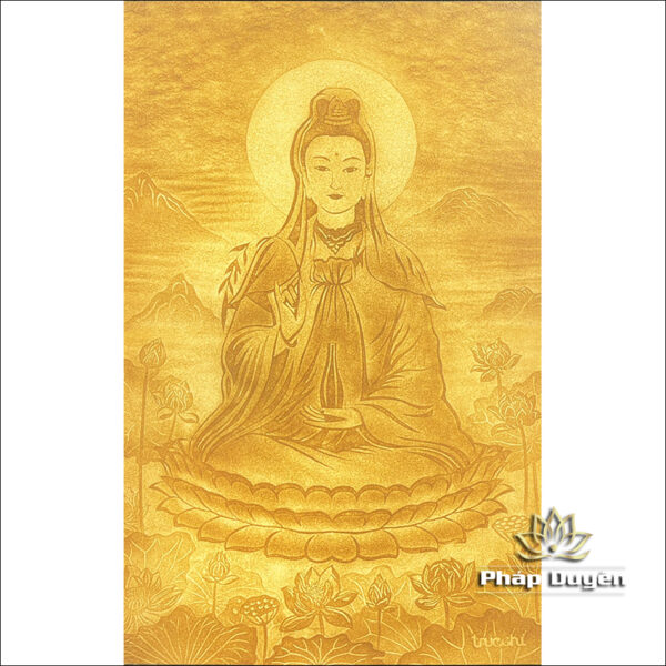 Tranh Trúc Chỉ Phật Bà Quan Âm Tọa Đài Sen, Kích Thước 77*123cm