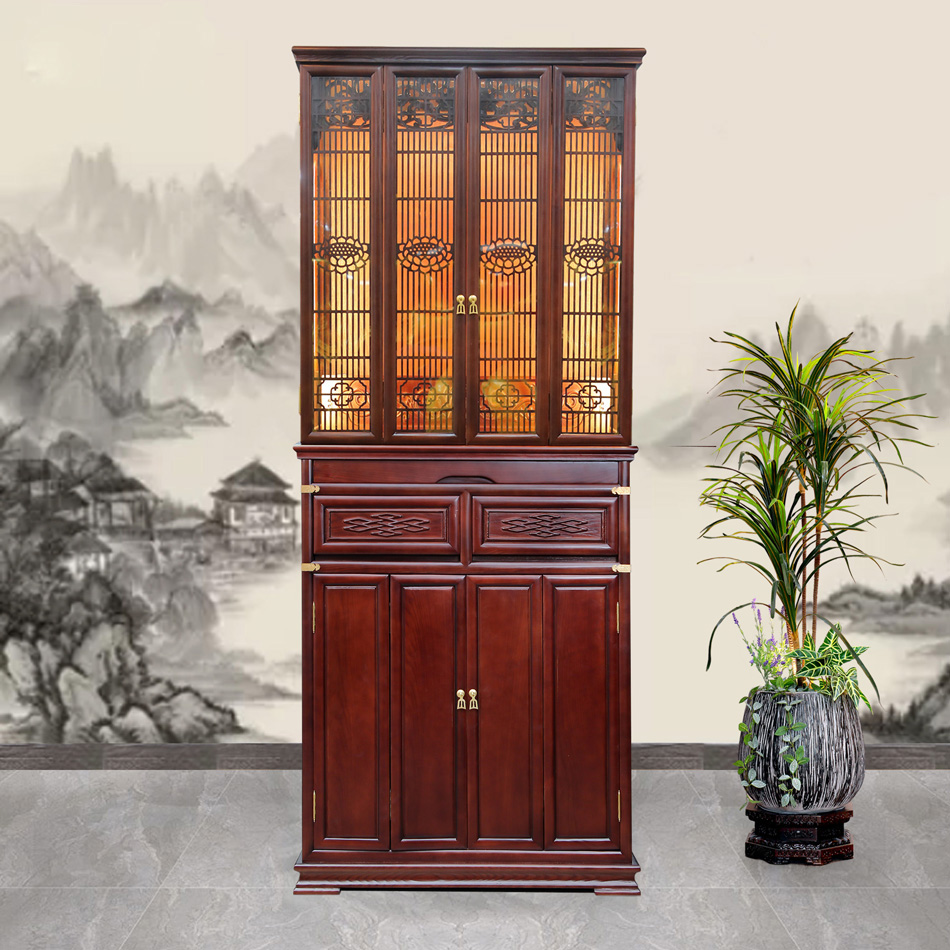 Tủ Thờ Phật - Gia Tiên Bốn Cánh "Liên Hoa", Chất Liệu Gỗ Sồi/Lát/Hương Đá, Nhiều Kích Thước