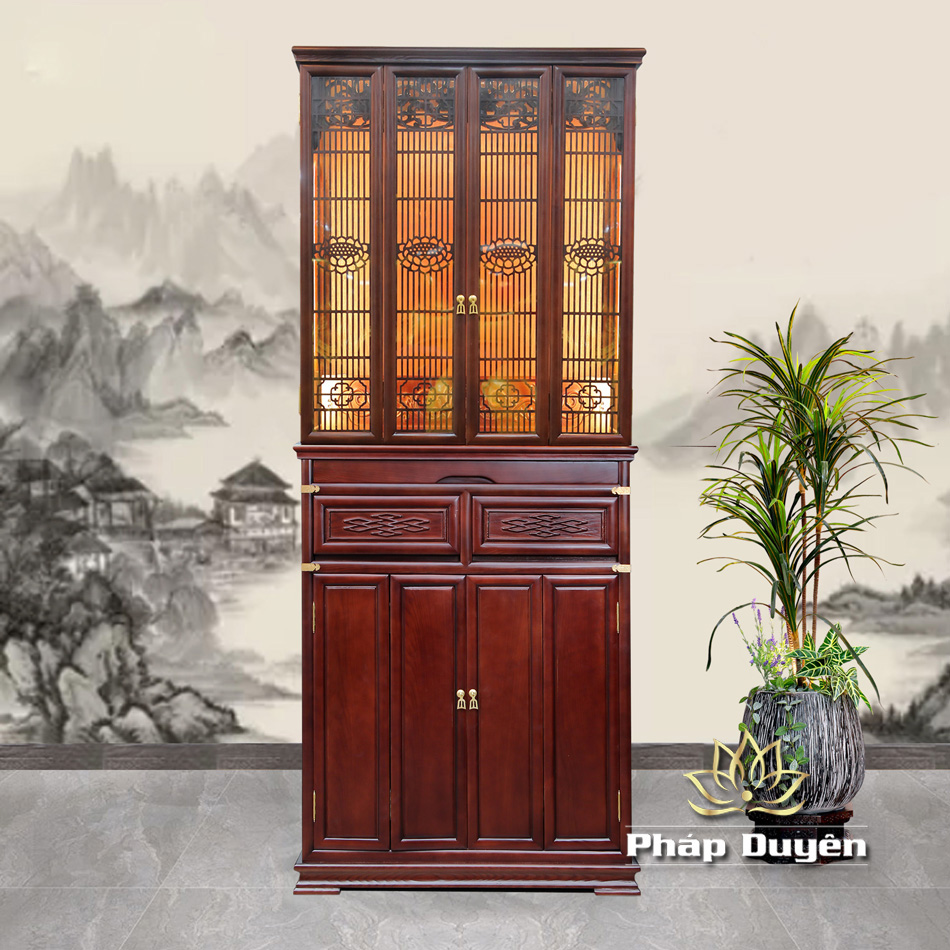 Tủ Thờ Phật – Gia Tiên Bốn Cánh “Liên Hoa”, Chất Liệu Gỗ Sồi/Lát/Hương Đá, Nhiều Kích Thước