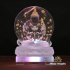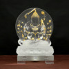 Tượng Bồ Tát Chuẩn Đề Lưu Ly Trắng Hoạ Tiết Dát Vàng 998, Cao 25cm (Tổng Đế Led 29cm)