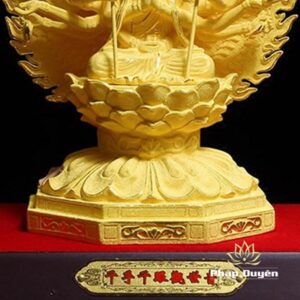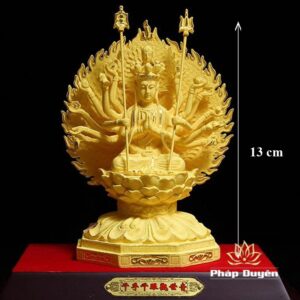 Tượng Bồ Tát Quan Âm Ngàn Tay Ngồi, Nhung Vàng Kim Sa, Cao 13cm, 15cm