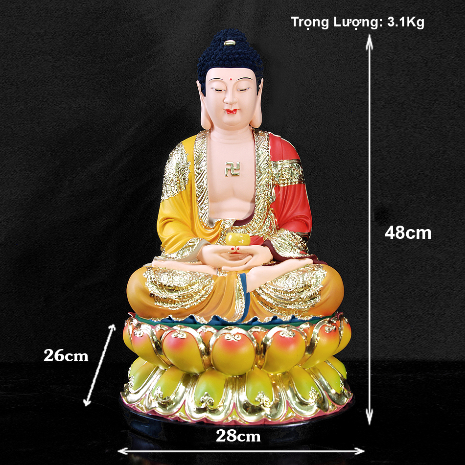 Tượng Bổn Sư Thích Ca Ngồi Áo Đỏ Chất Liệu Composite, 30-48cm