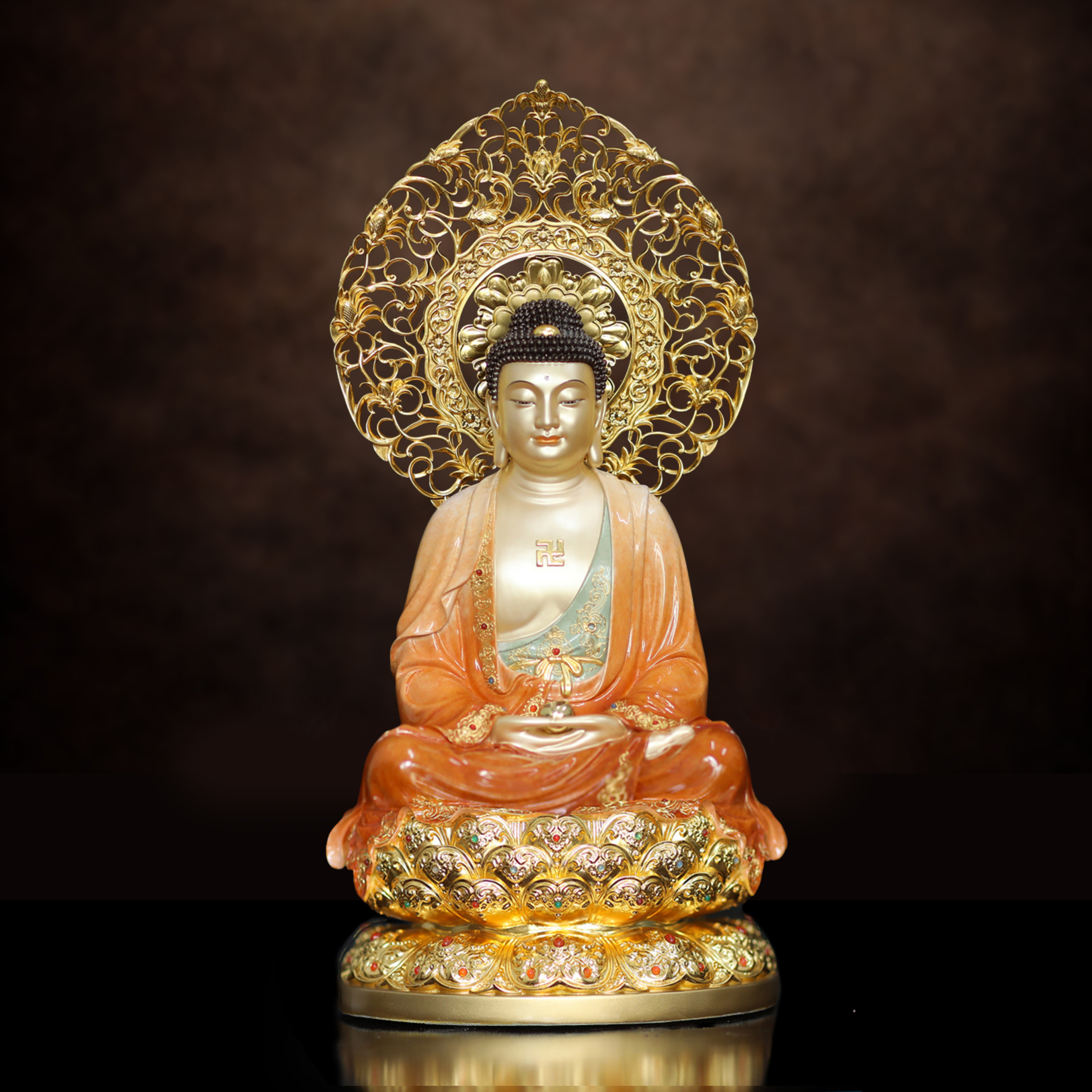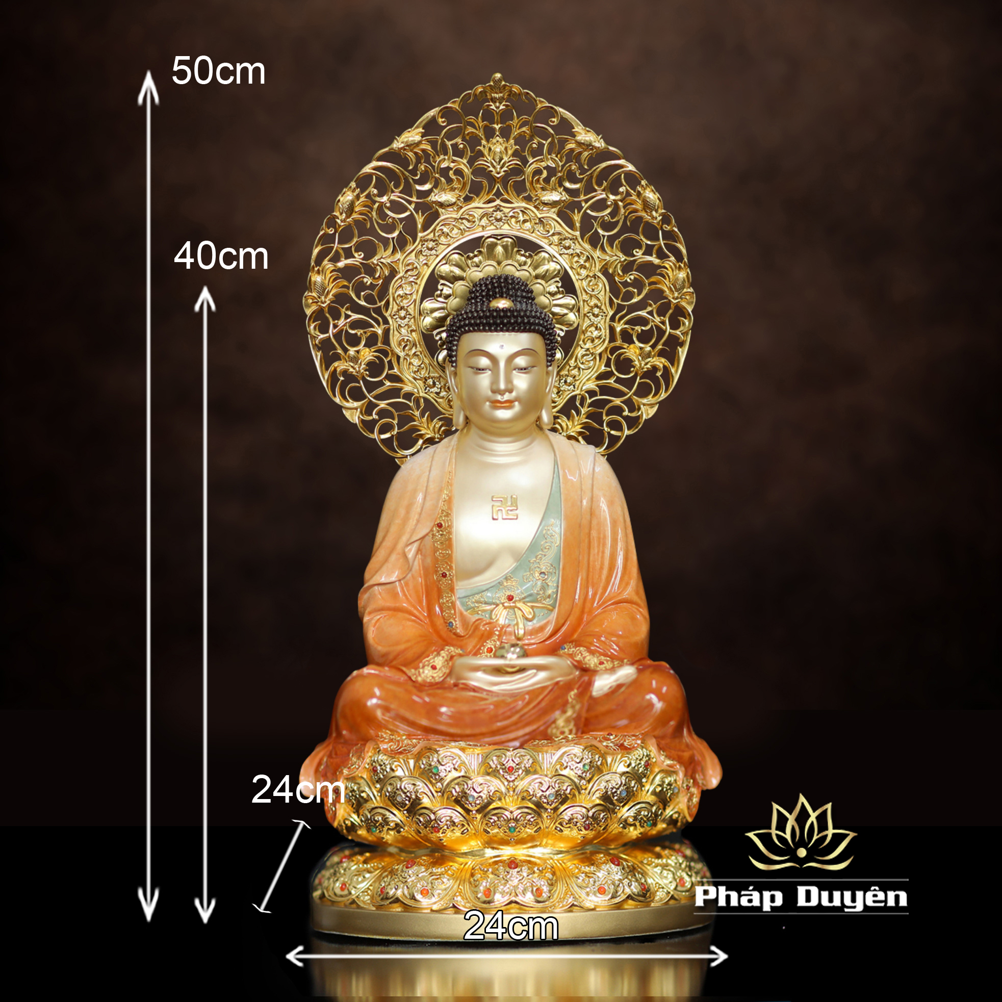 Tượng Bổn Sư Thích Ca Ngồi, Bằng Đồng Sơn Men Độ Cao, Cao 40cm (Tổng Hào Quang 50cm)