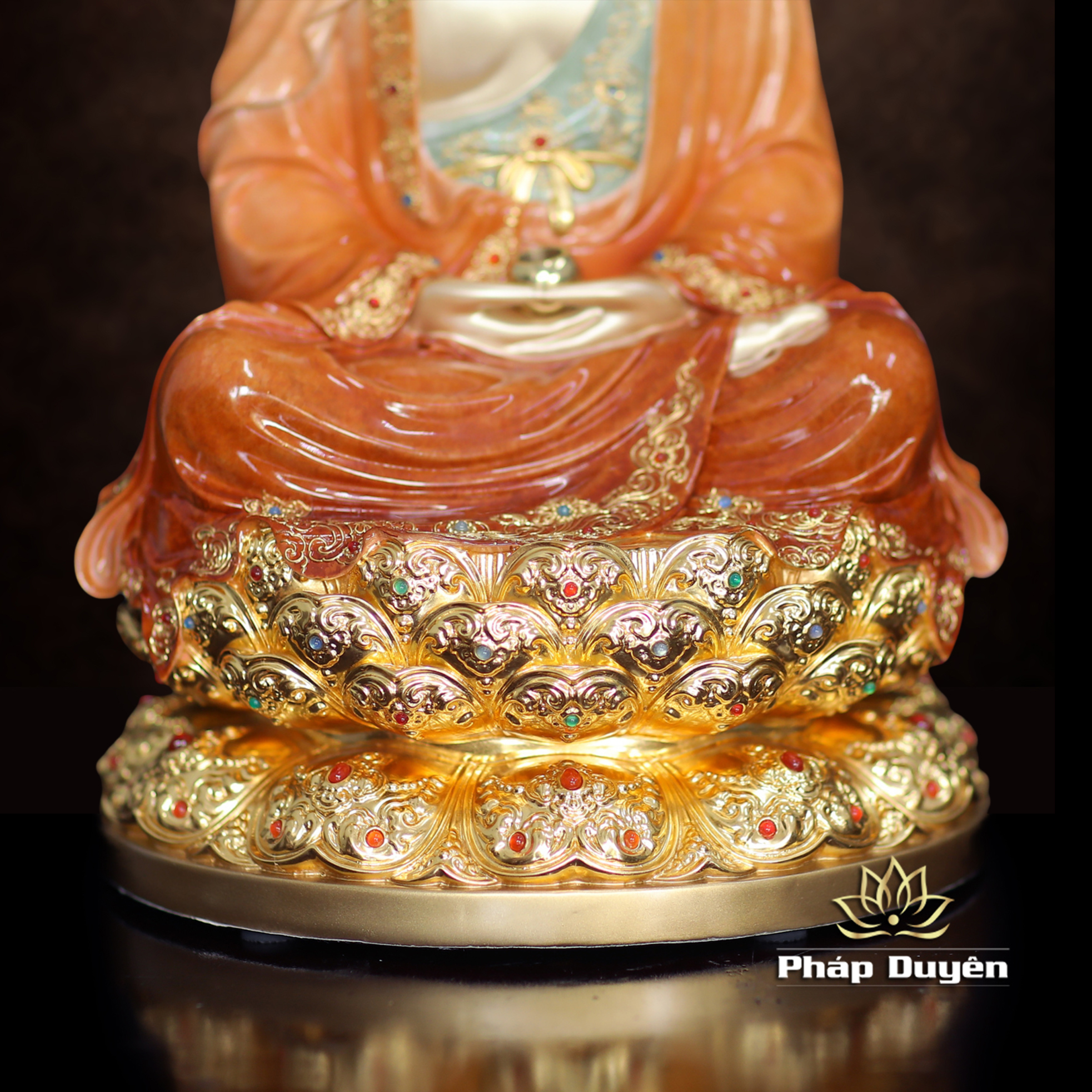 Tượng Bổn Sư Thích Ca Ngồi Tĩnh Tâm Bằng Lưu Ly Màu Hổ Phách Cao Cấp, Cao 30cm