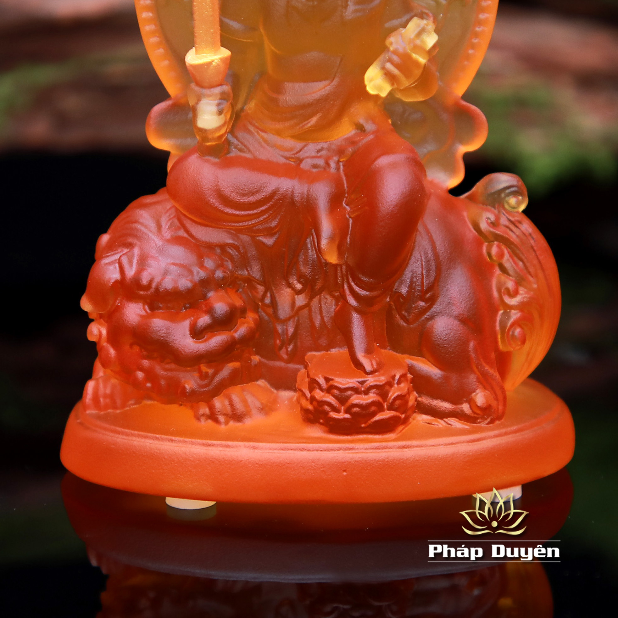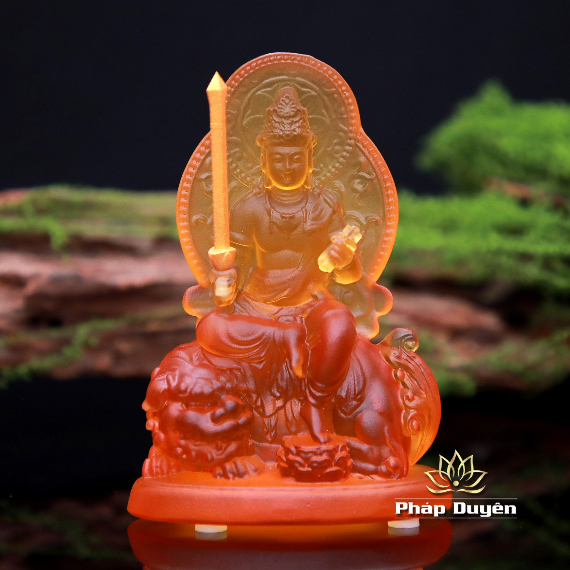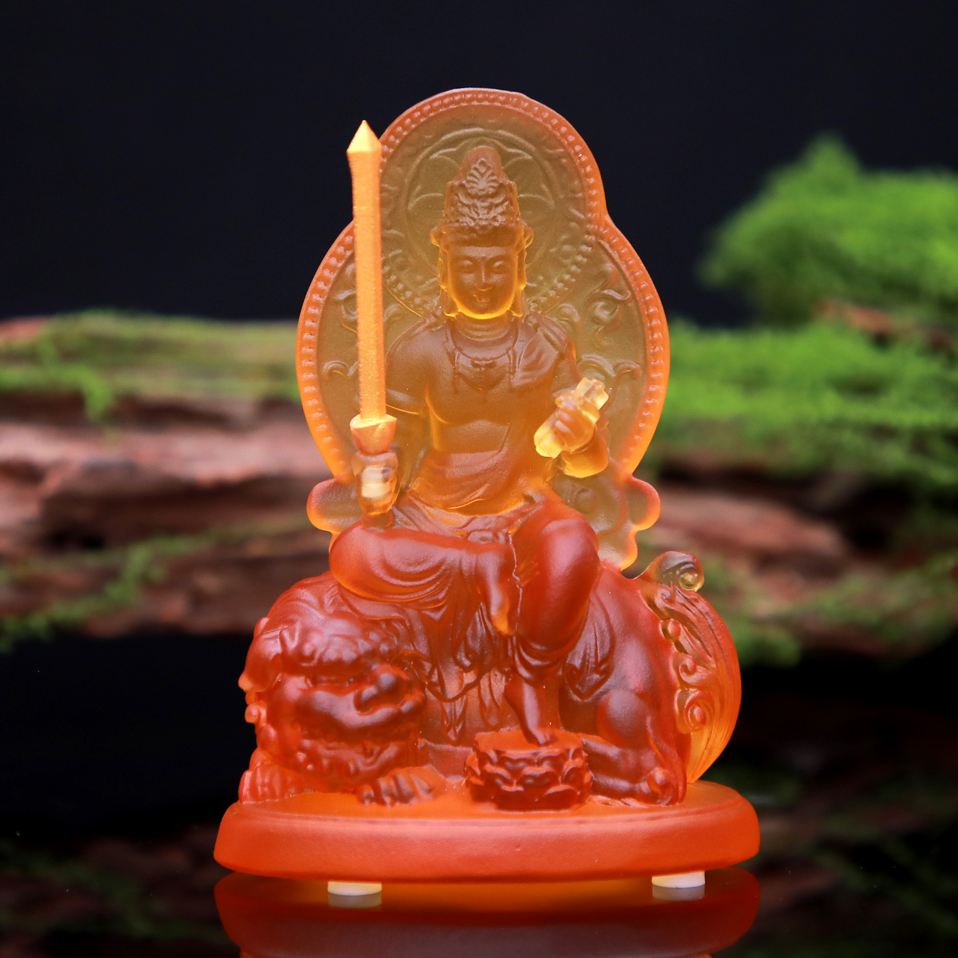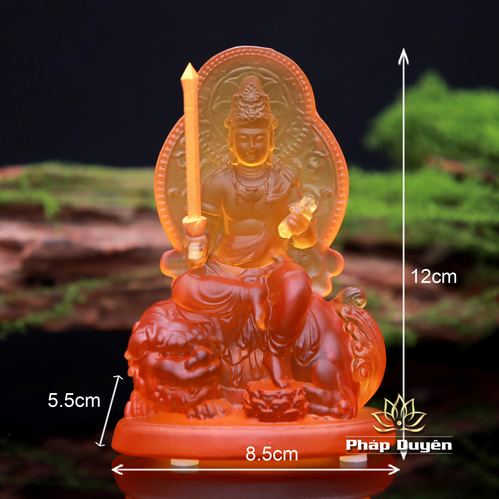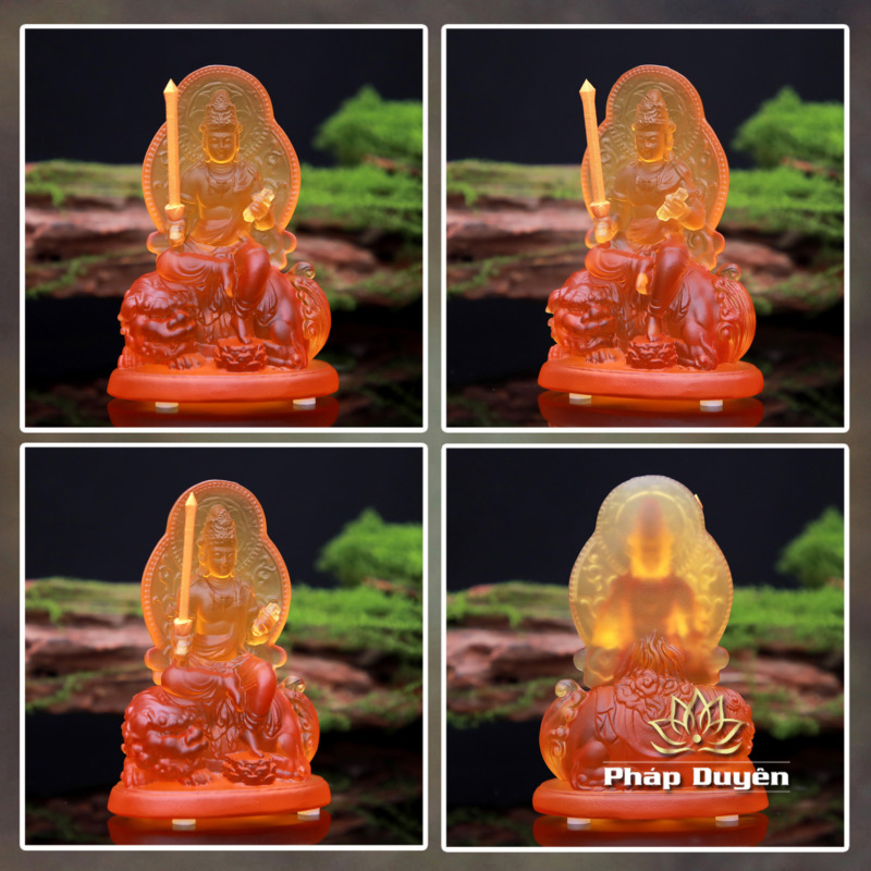 Tượng Bồ Tát Văn Thù Cưỡi Sư Tử, Chất Liệu Lưu Ly, Để Xe Hơi, Để Bàn Làm Việc, Cao 12.5cm