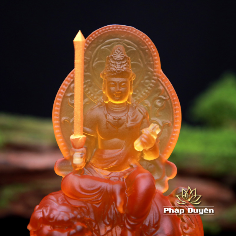 Tượng Để Xe Bồ Tát Văn Thù Lưu Ly Màu Vàng, Cao 12cm