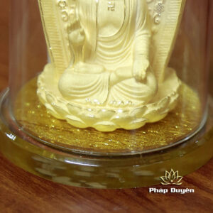 Tượng Để Xe Hình Bổn Sư Thích Ca Mâu Ni 2 Mặt, Nhung Vàng Kim Sa, Cao 11cm