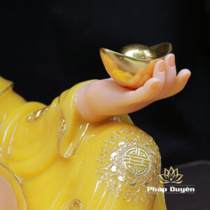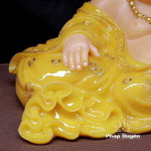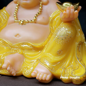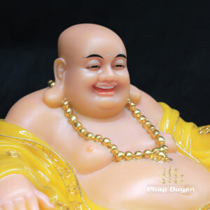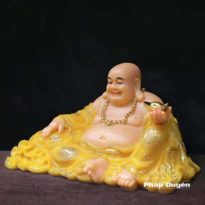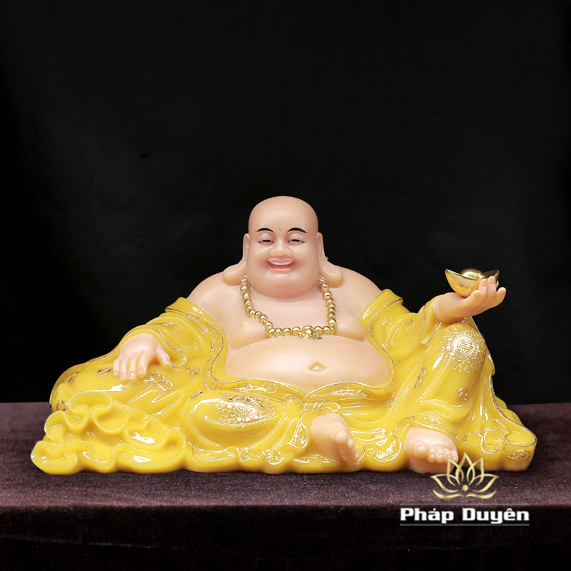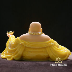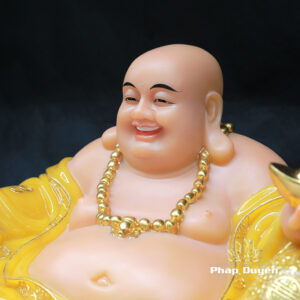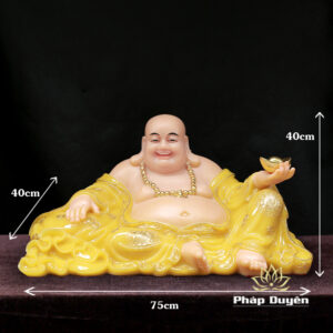 Tượng Đức Di Lặc Ngồi Nằm, Bột Đá Thạch Anh Viền Vàng Nổi, Cao 40cm, Ngang 75cm