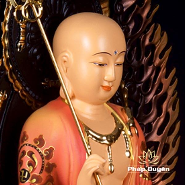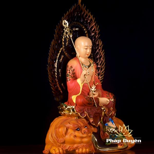 Hình Tượng Địa Tạng Vương cưỡi Lân, có lá đề, tay trái cầm minh châu, tay phải cầm tích trượng
