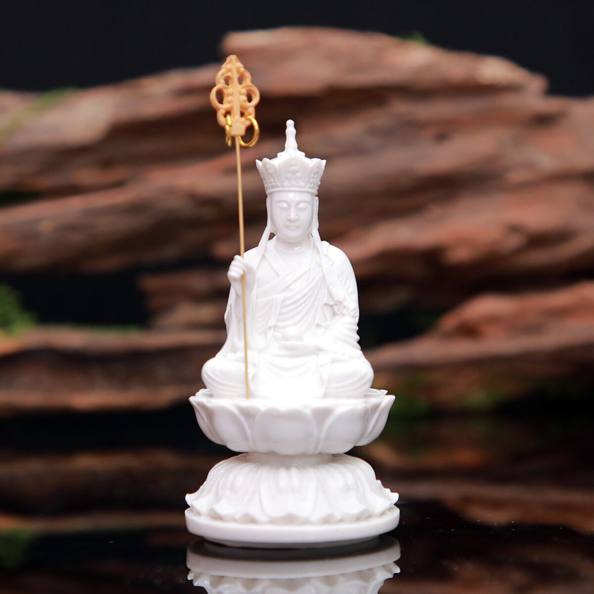 Tượng Địa Tạng Bồ Tát Chất Liệu Composite Màu Trắng, Cao 11cm