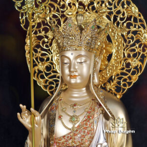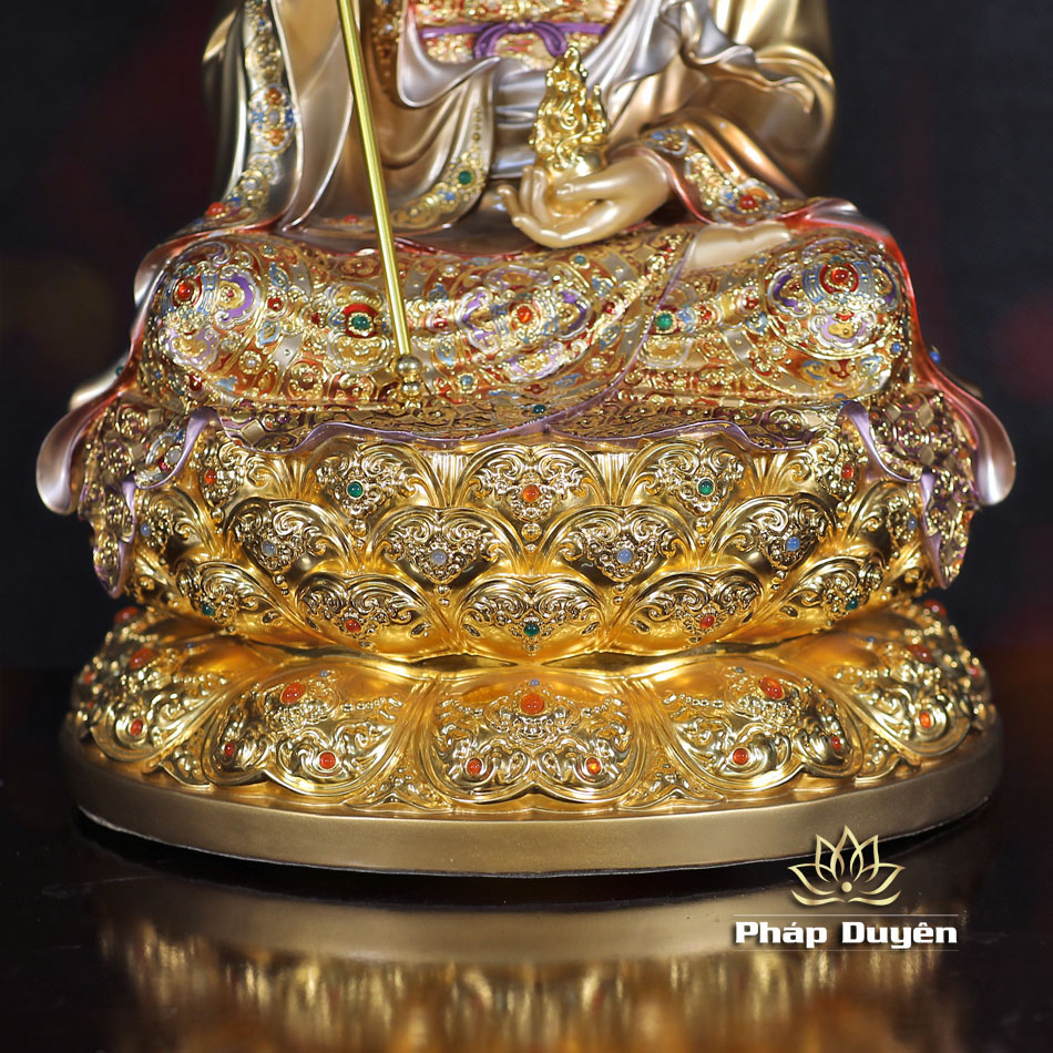 Tượng được làm bằng đồng Men cổ viền vàng mẫn bảo, chắc chắn, bền đẹp