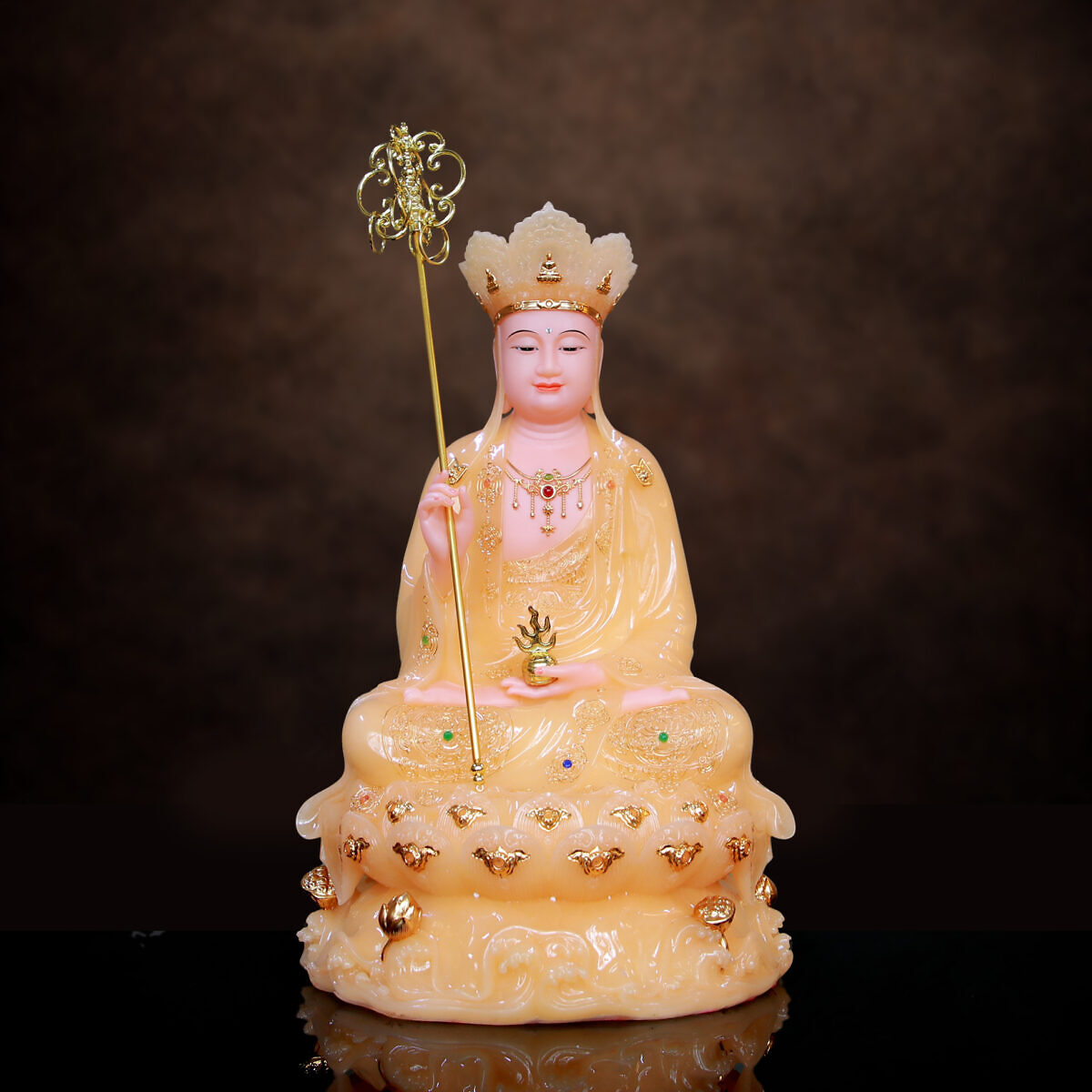 Tượng Địa Tạng Bồ Tát Ngồi Đế Non Nước Bột Đá Thạch Anh, Nhiều Kích Thước