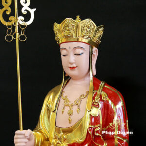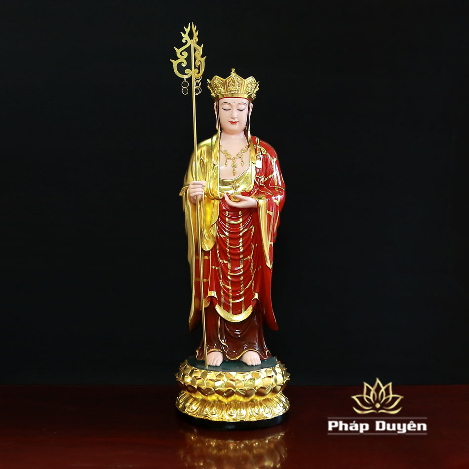 Tượng Địa Tạng Đứng Áo Đỏ Chất Liệu Composite Dát Vàng, Cao 70cm