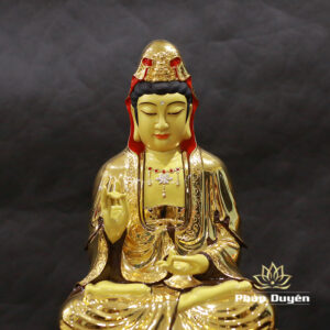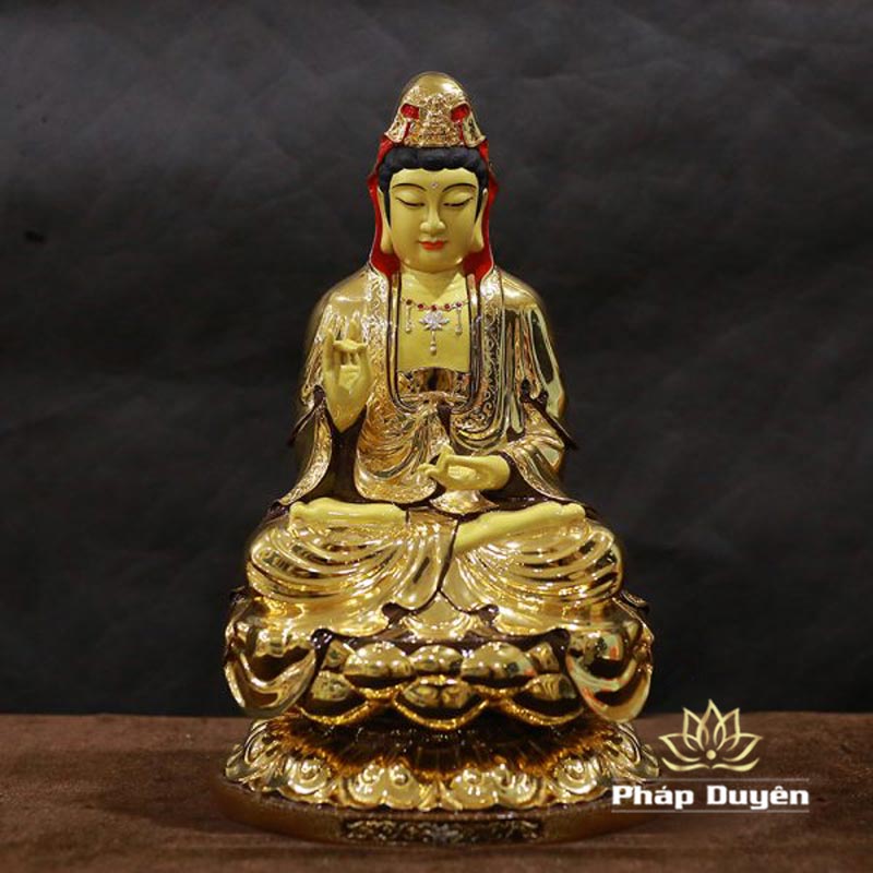 Tượng Phật Bà Quan Âm Ngồi, Đồng Đài Loan Mạ Vàng, Kích Thước 48cm