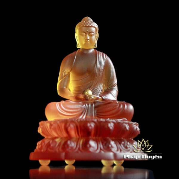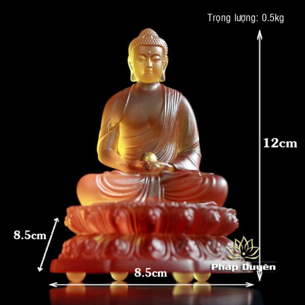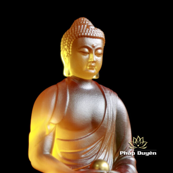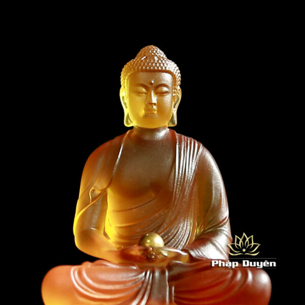 Tượng Bổn Sư Thích Ca Bằng Lưu Ly Vàng Hổ Phách, Cao 11.7cm Để Xe Hơi (Ô tô), Để Bàn Làm Việc