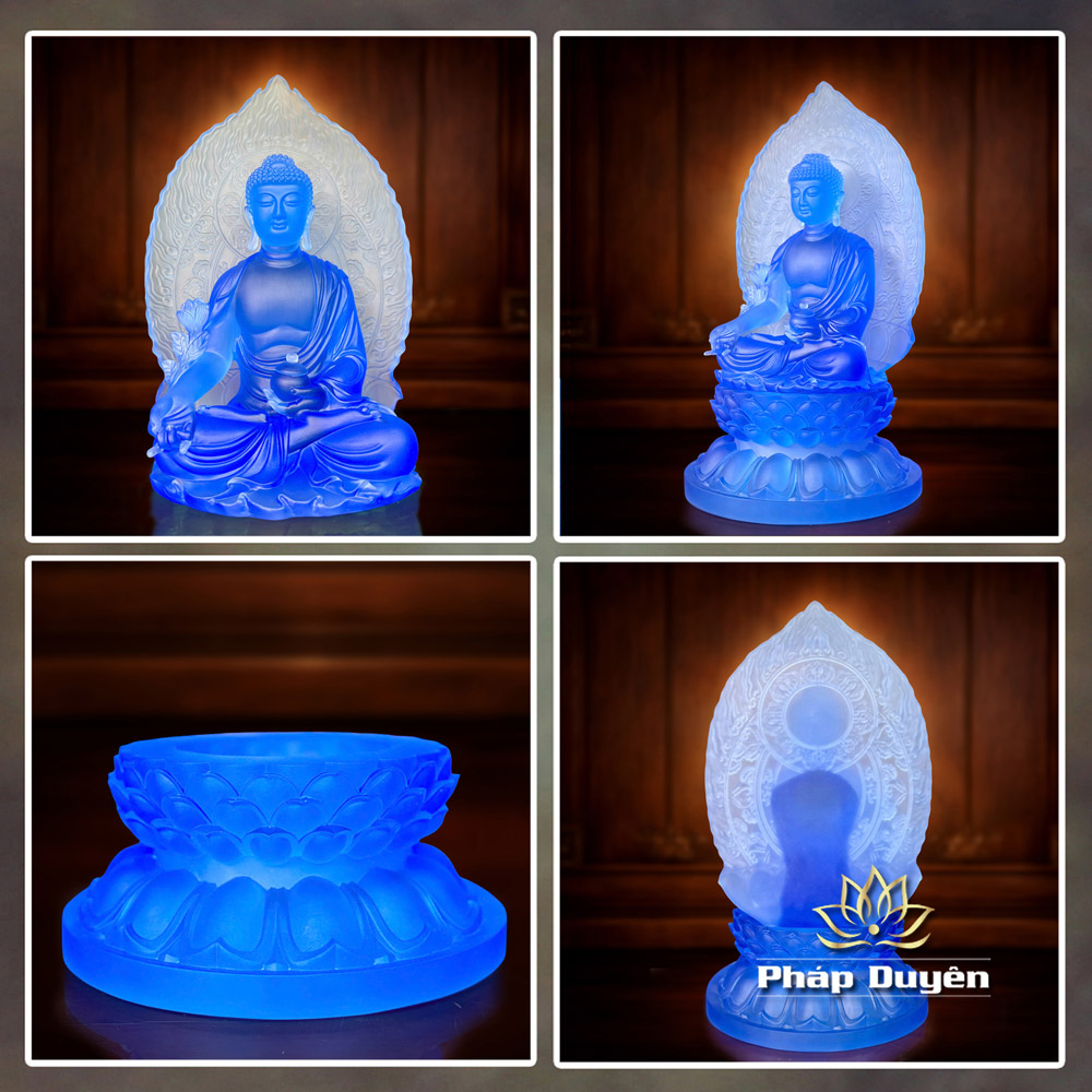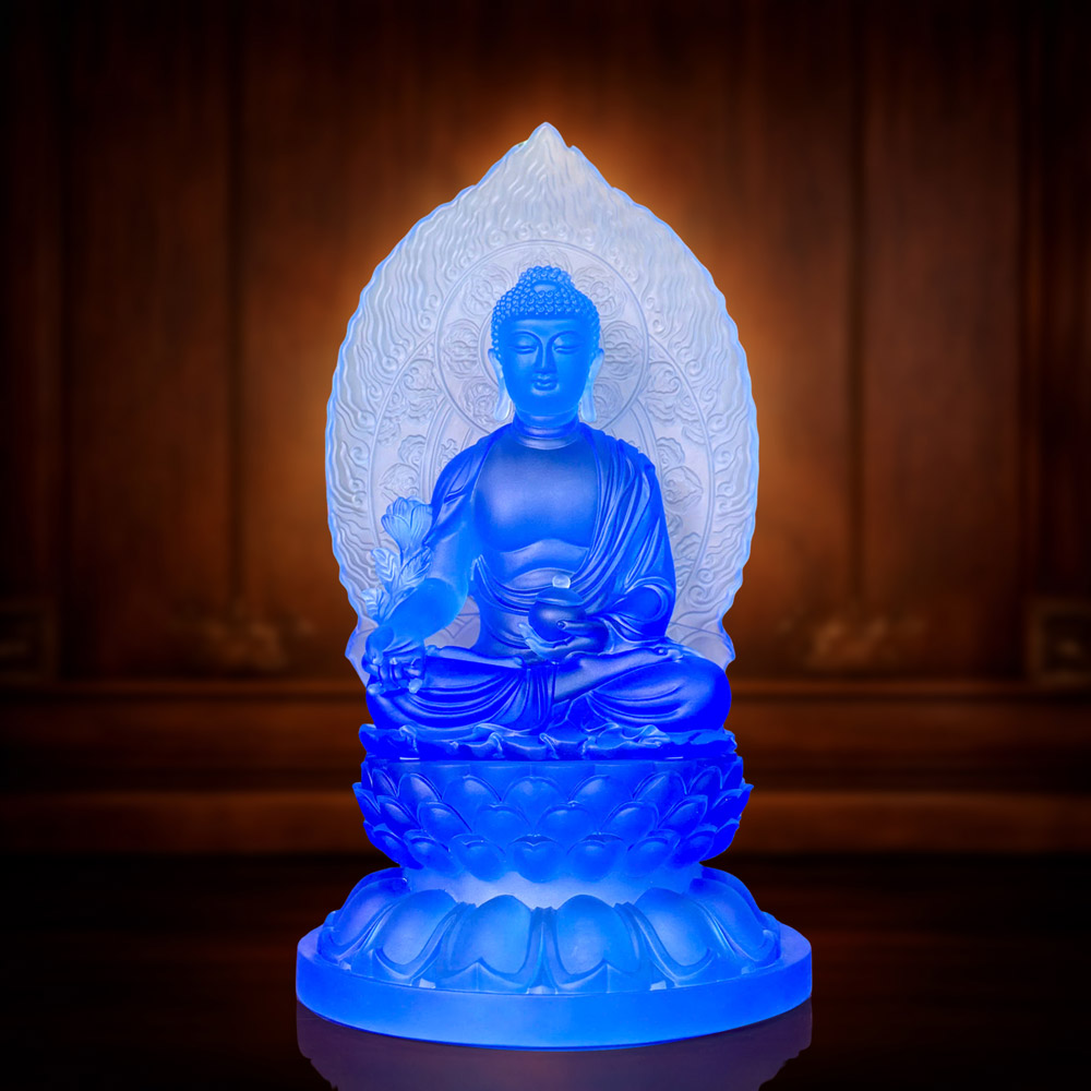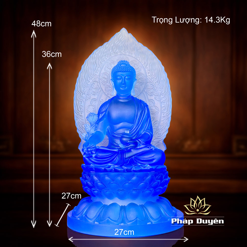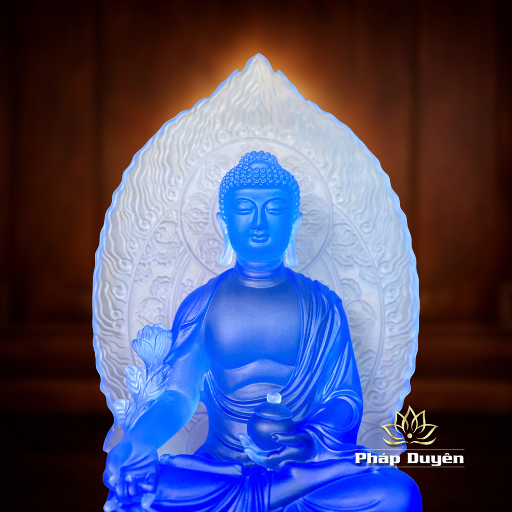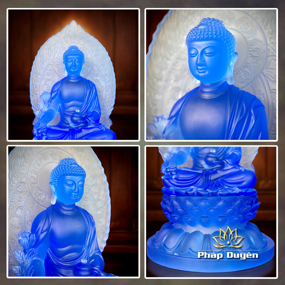 Tượng Phật Dược Sư, Chất Liệu Lưu Ly Màu Xanh Dương, Cao 31cm