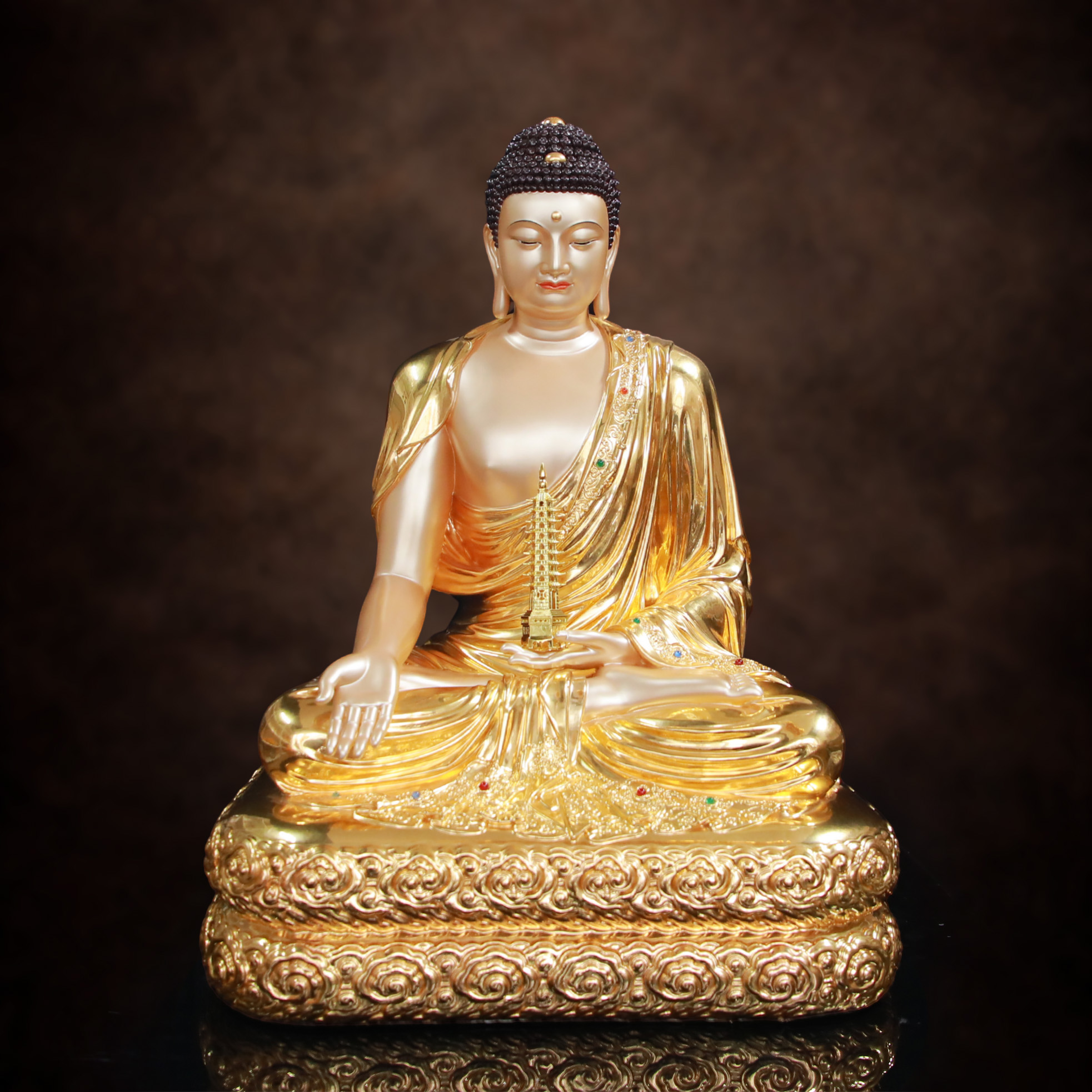 Tượng Dược Sư Ngồi, Đồng Dát Vàng Ấn Bảo, Cao 60cm