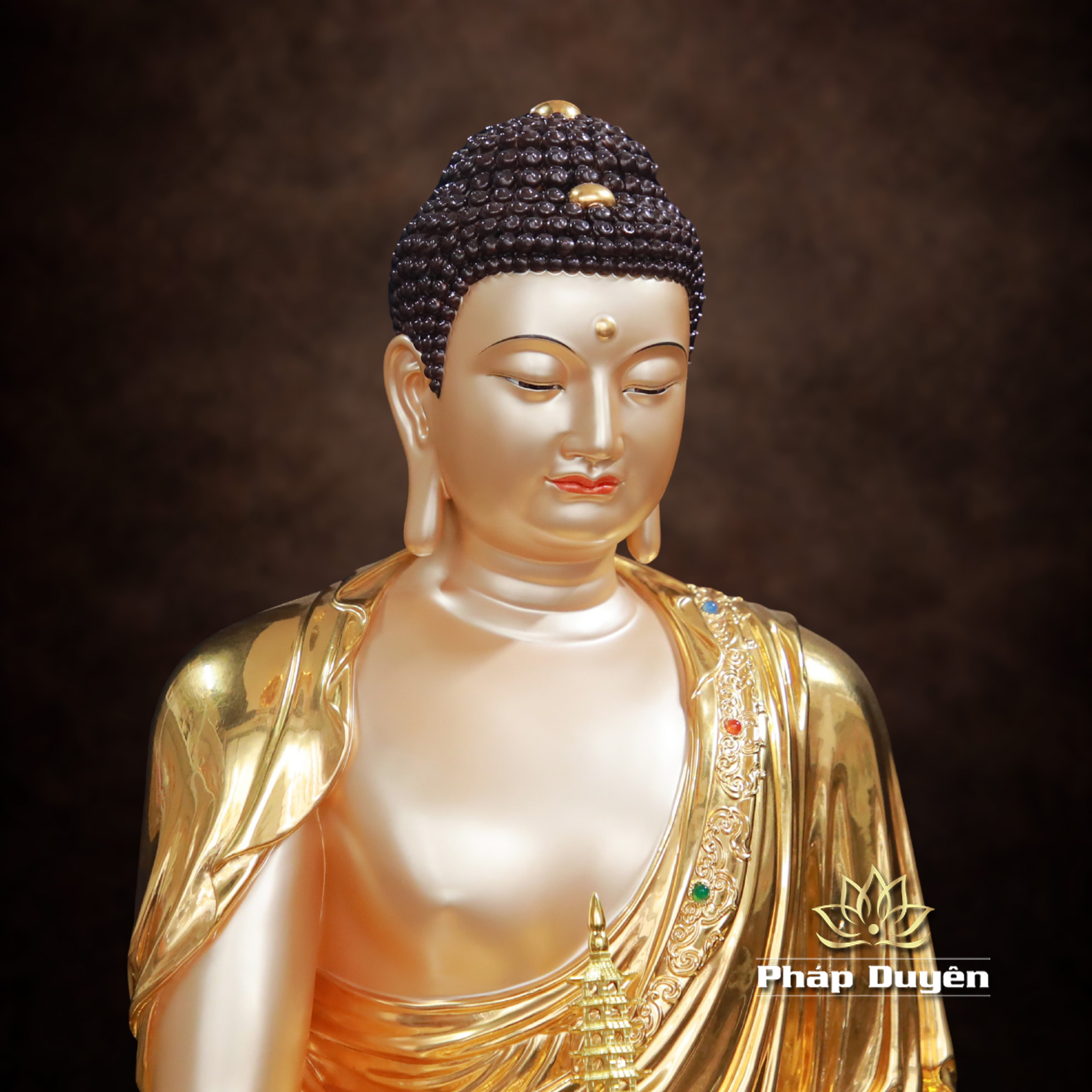 Tượng Phật Dược Sư Ngồi, Chất Liệu Đồng Dát Vàng, Cao 128cm (Tổng Lá Đề 150cm)