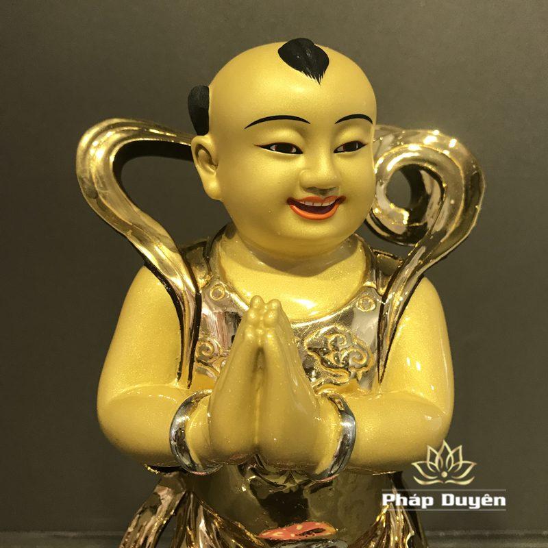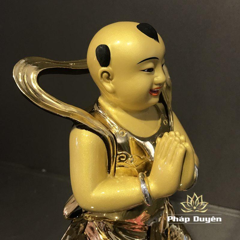 Tượng Kim Đồng Đứng Chắp Tay, Bằng Đồng Đài Loan Mạ Vàng, Kích Thước 30x13x13cm