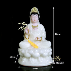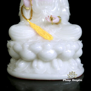 Tượng Ngài Quan Thế Âm Ngồi Đài Sen Bằng Bột Đá Trắng, Cao 40cm