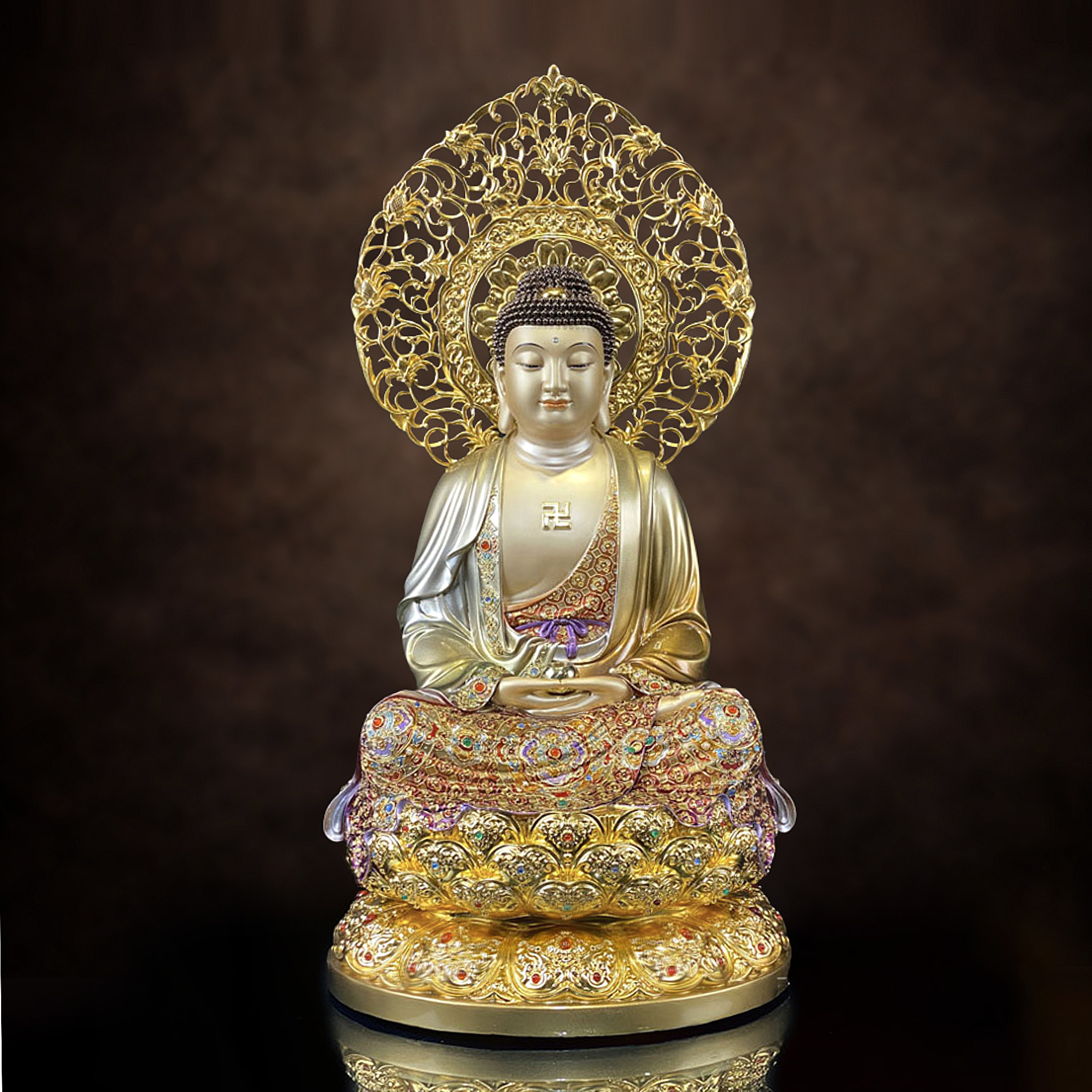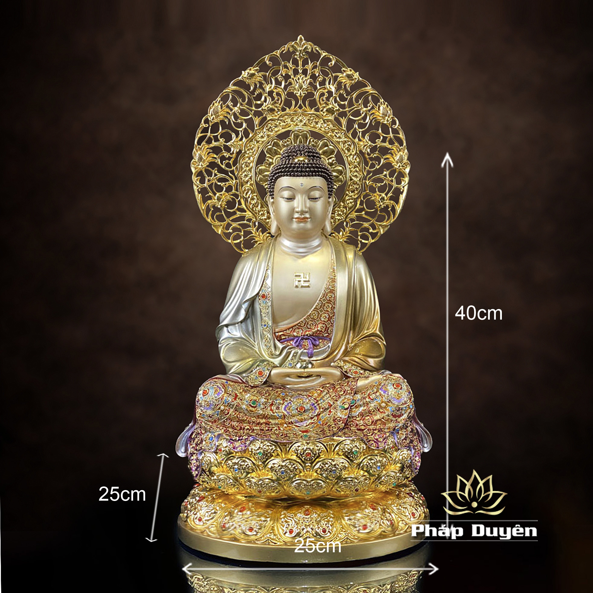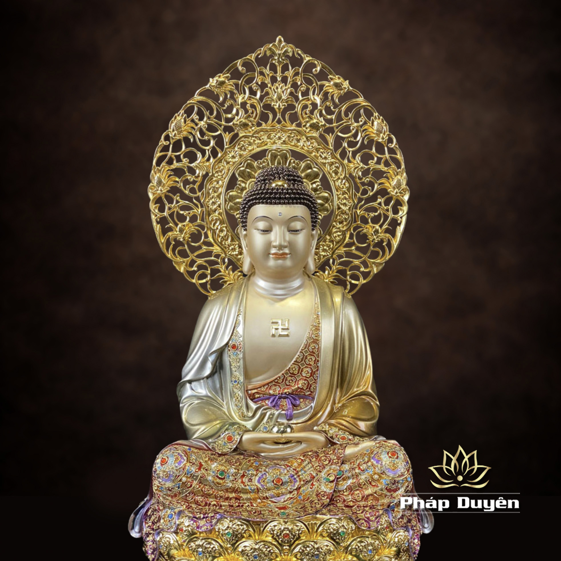 Tượng Đồng Bổn Sư Thích Ca Mâu Ni Ngồi Tĩnh Tâm Bằng Đồng Đài Loan Mạ Vàng, Cao 48cm (Tổng Cao 59cm)