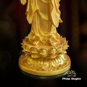 Tượng Phật A Di Đà Đứng Đài Sen Bằng Composite Sơn Nhũ Vàng, Cao 1.2m