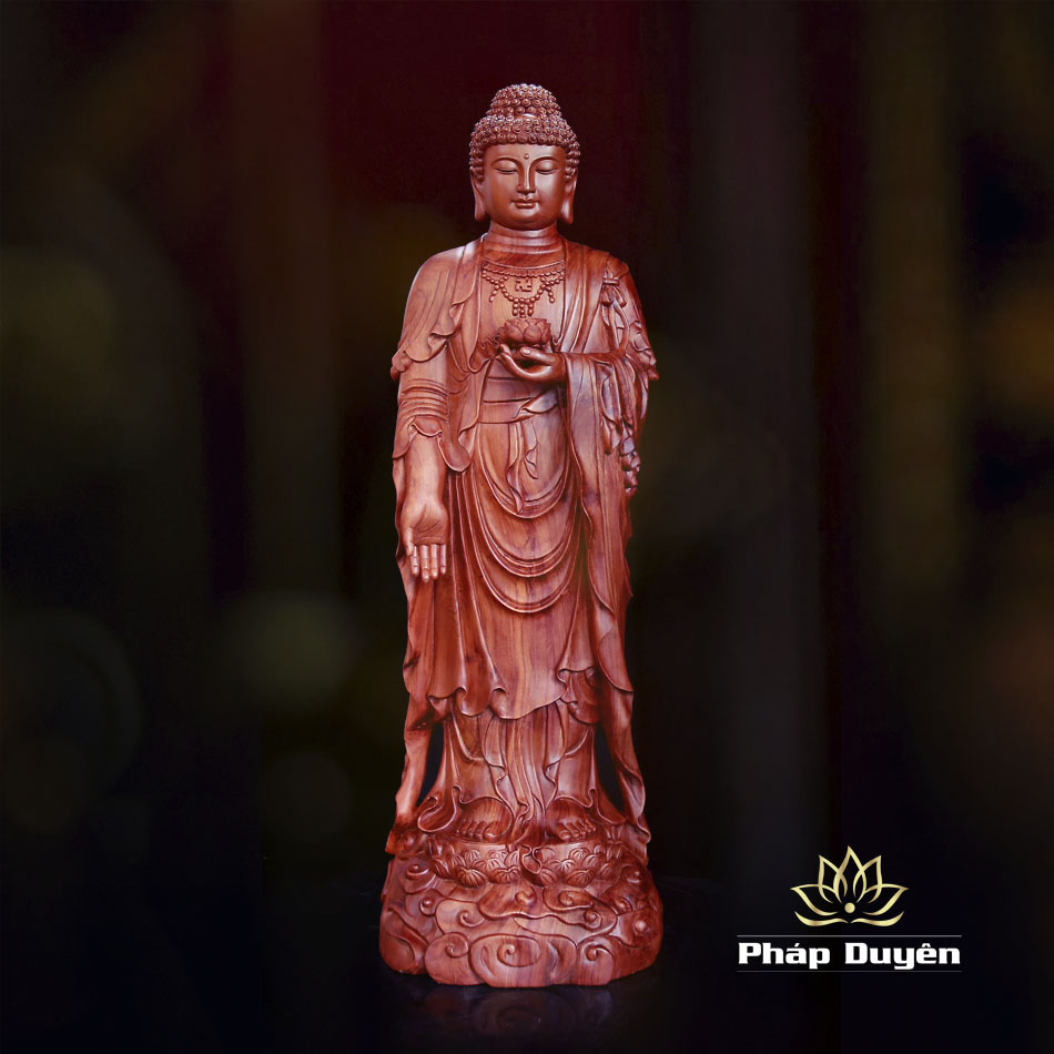 Tượng Phật A Di Đà Đứng Đế Mây, Bằng Gỗ Hương, Cao 80cm