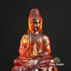 Tượng Quan Âm Ngồi, Bằng Đá Lưu Ly Màu Hổ Phách, Cao 25cm
