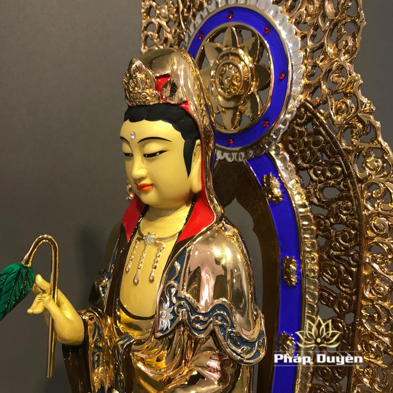 Tượng Đồng Quan Âm Đứng Có Hào Quang,