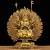 Tượng Nghìn Tay Nghìn Mắt (Thiên Thủ Thiên Nhãn) Ngồi, Bằng Đồng Vàng, Cao 30cm (Tổng 36.5cm)