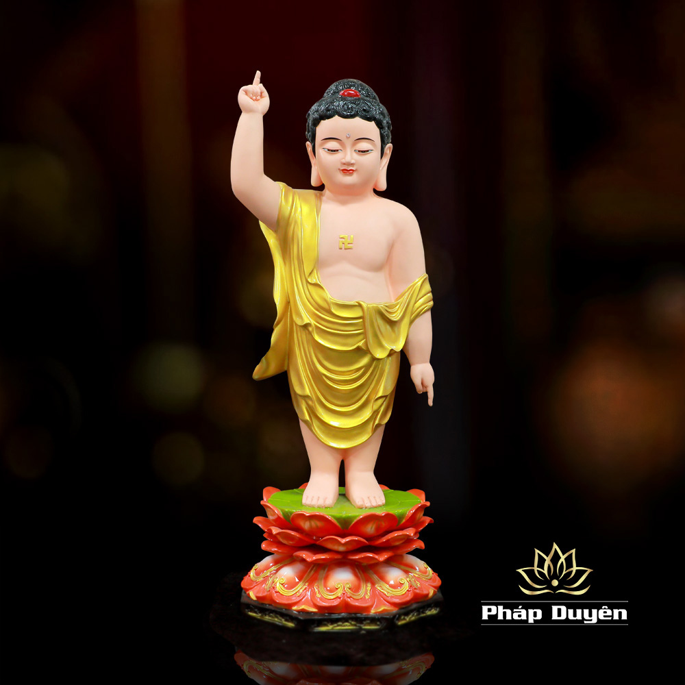 Tượng Phật Đản Sanh Vàng Vẽ, Chất Liệu Composite, Cao 90cm