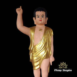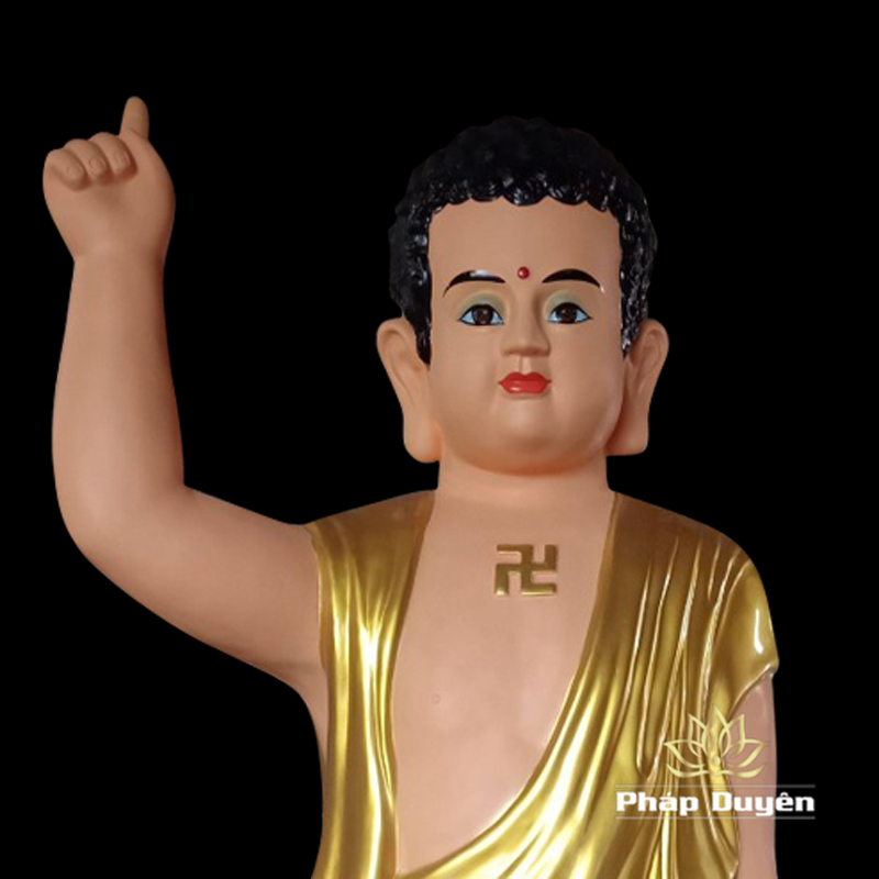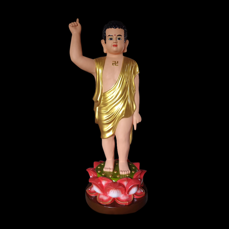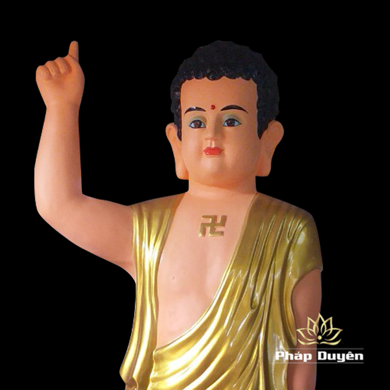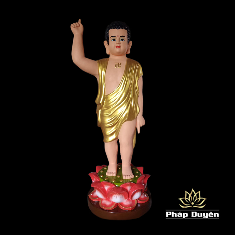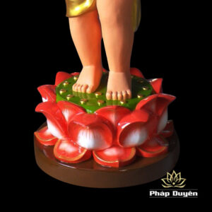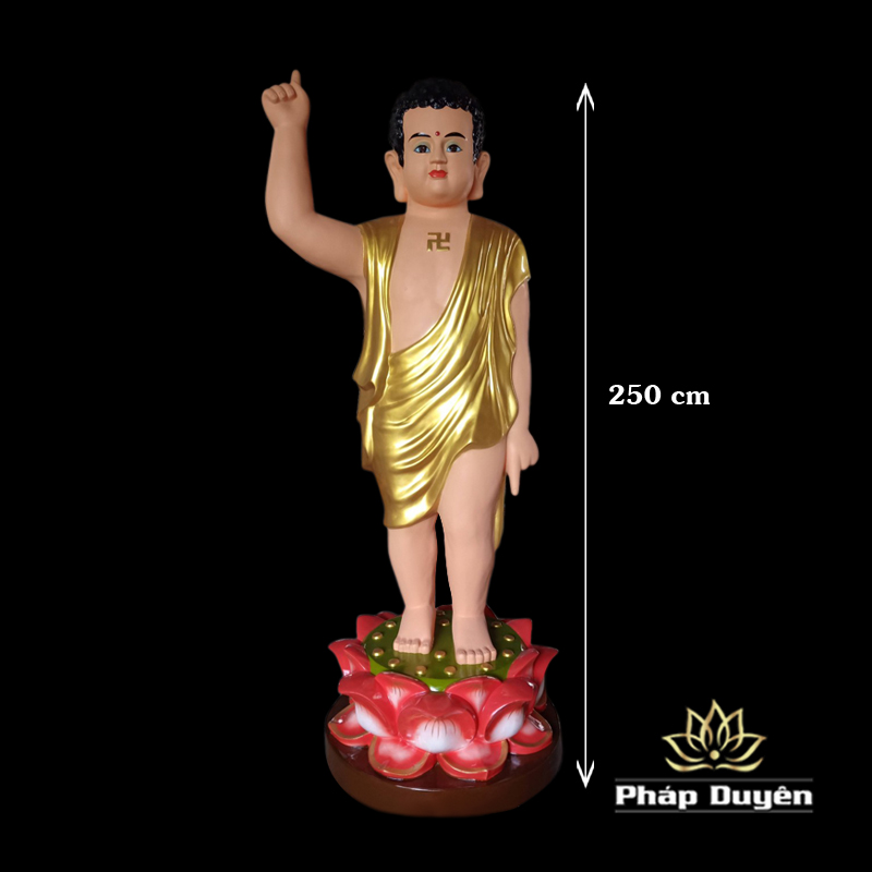 Tượng Phật Đản Sanh Y Áo Dát Vàng Đứng Trên Đài Sen Bằng Composite, Cao 250cm