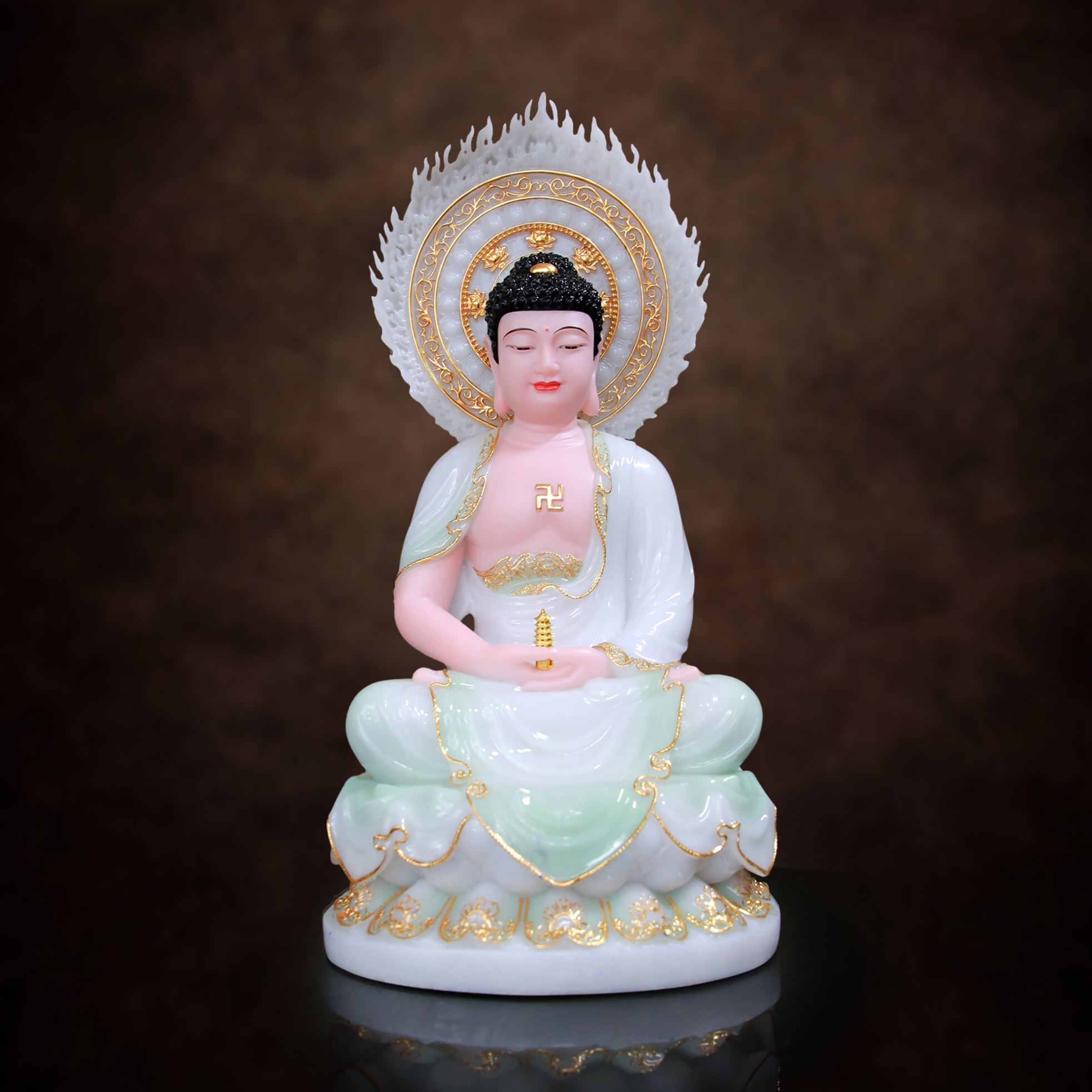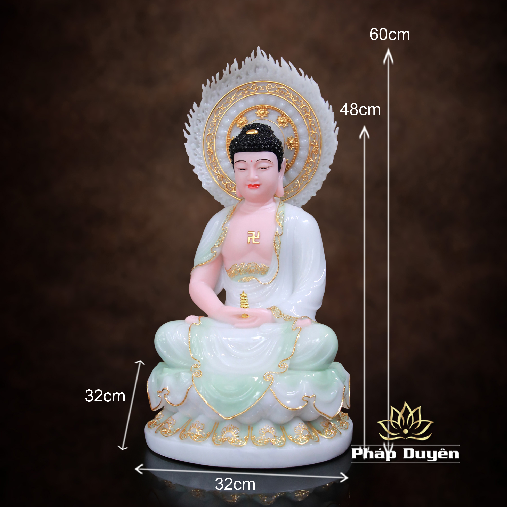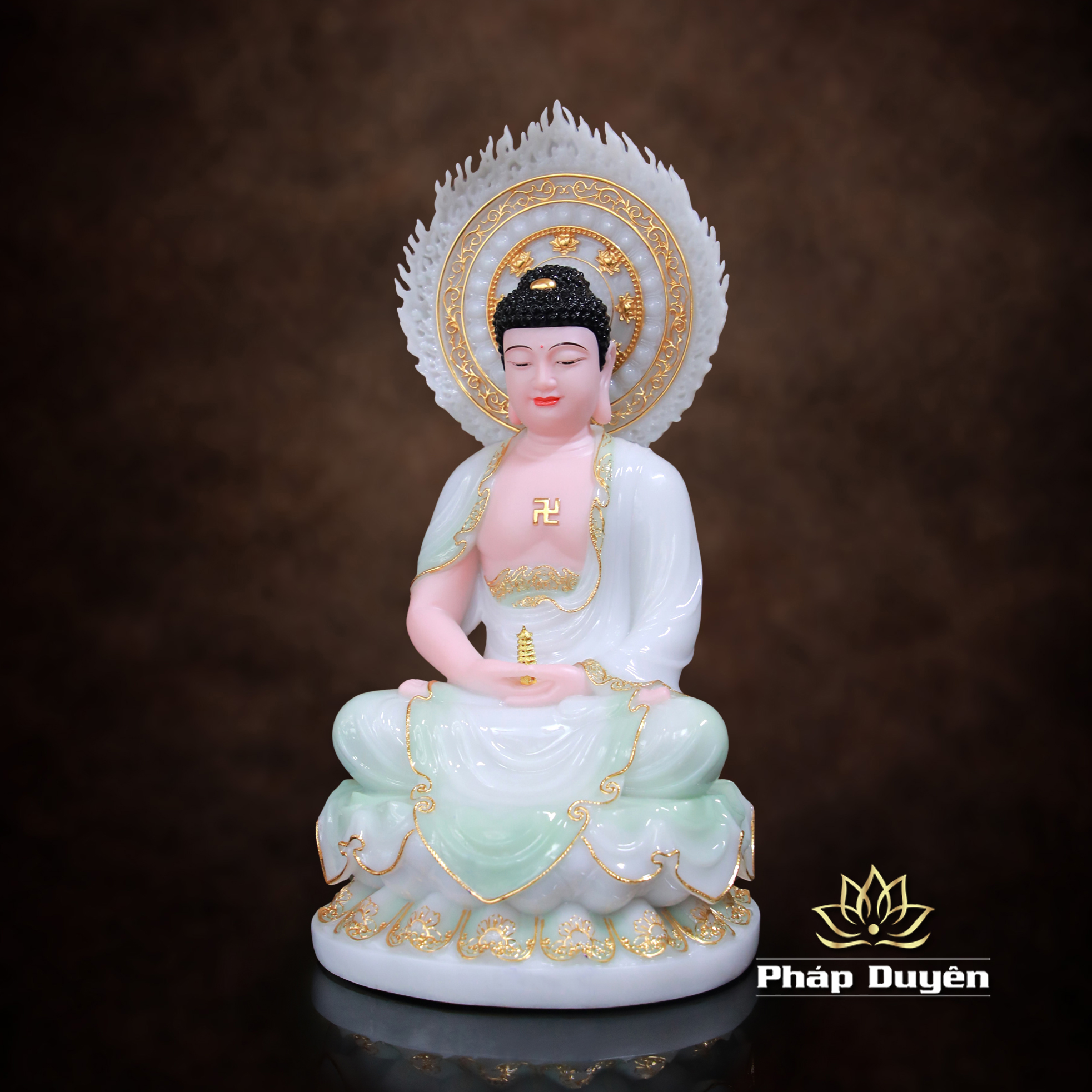 Bộ Tượng Dược Sư Ngồi Đài Sen Có Hào quang Mài Vẽ Cao Cấp Bằng Composite, Cao 40cm (Tổng Lá Đề 52cm)
