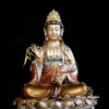 Tượng Phật Bà Quan Âm Ngồi, Đồng Đài Loan Mạ Vàng, Kích Thước 41x27x27cm