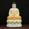 Tượng Bổn Sư Thích Ca Ngồi Tĩnh Tâm Trên Bệ Đá Mầu Vàng Nâu Vẽ Gấm Bằng Bột Đá, Cao 48cm/88cm