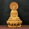 Tượng Phật Thích Ca Ngồi Non Nước Bằng Gỗ Nguyên Màu Có Hào Quang Nhỏ, Cao 48cm (Tổng Hào Quang 58cm)