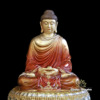Tượng Đức Bổn Sư Thích Ca Mâu Ni Ngồi Đài Sen Vẽ Gấm Đỏ Bằng Bột Đá, Cao 40cm