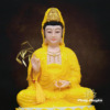 Tượng Quan Âm Bồ Tát Ngồi Bằng Bột Đá, Màu Vàng Hổ Phách, Cao 36cm, 40cm, 48cm, 66cm