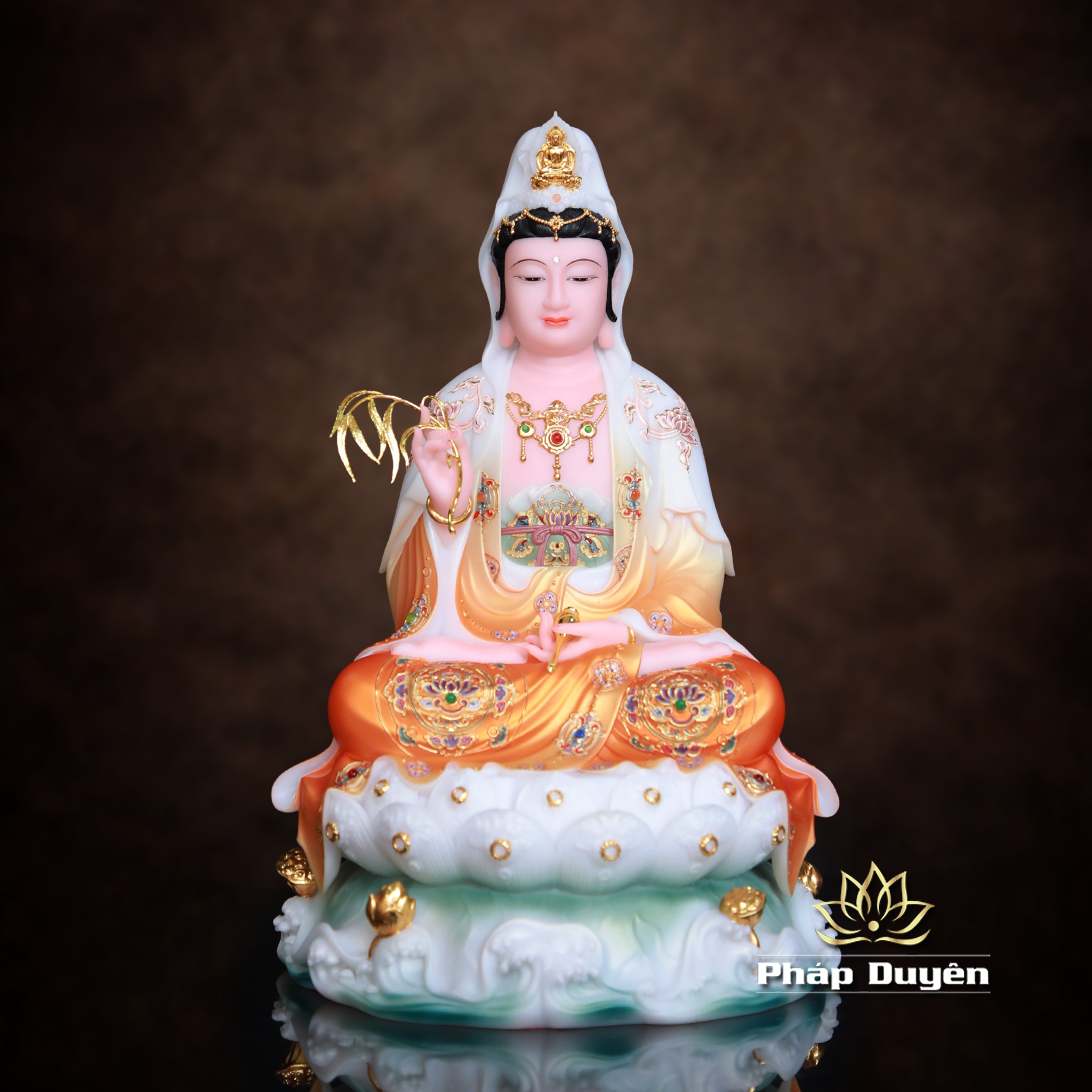 Đầu tiên là bạn phải chắc chắn bạn đang tìm tượng của vị Phật hoặc vị Bồ Tát mà bạn vô cùng kính ngưỡng và nguyện học tập theo đức hạnh của Ngài. Tượng mà bạn đang tìm hiểu làTượng Quan Âm Bồ Tát Ngồi Đế Non Nước, Bột Đá Áo Cam, Cao 30-66cm, thuộc vàoTượng Phật Bà Quan Âm Bồ Tát.