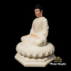 Tượng Thích Ca Tĩnh Tâm Ngồi Đài Sen Đế Bát Giác Mầu Trắng Da Hồng Bằng Bột Đá, Cao 48cm