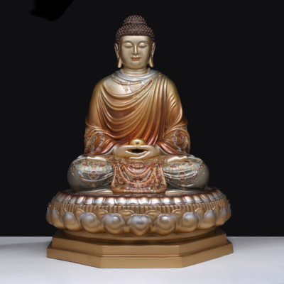 Tượng Dược Sư Lưu Ly Bằng Đồng Men Độ Cao, Đế Dát Vàng, Cao 48cm