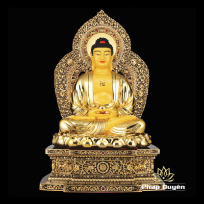 Tượng Phật A Di Đà Ngồi Đế 8 Cạnh, Chất Liệu Đồng Mạ Vàng Cao Cấp, Cao 40cm
