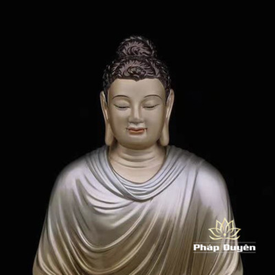 Tượng Bổn Sư Thích Ca Tĩnh Tâm Ngồi Đài Sen Bằng Đồng Vẽ Sơn, Cao 48cm, 68cm, 88cm, 108cm