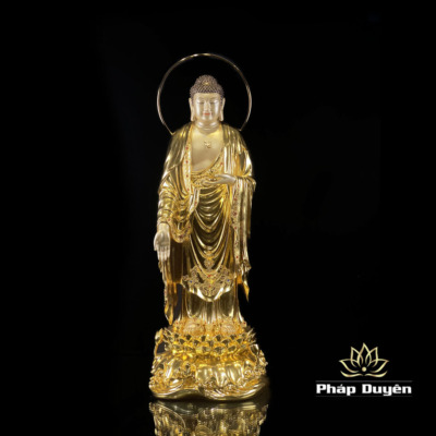 Tượng Phật A Di Đà Đứng Đài Sen Có Hào Quang, Đồng Mạ Vàng 998, Tượng Cao 88cm (Tổng Cao 96cm)